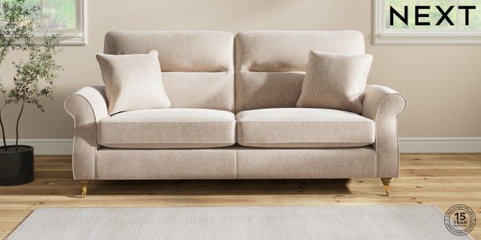 7.2.10 Ashford Highback 3 Seater Sofa Cotswold Chenille Light Natural Castor - Light | Made Click here to use our website with more accessibility support, for example screen readers