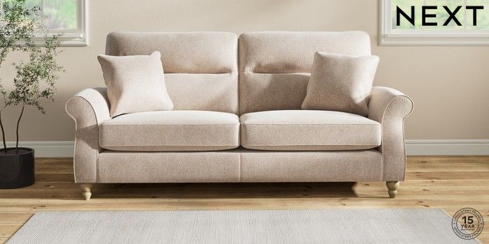 7.2.10 Ashford Highback 3 Seater Sofa Cotswold Chenille Light Natural Low Turned - Light | Made Click here to use our website with more accessibility support, for example screen readers