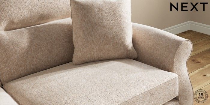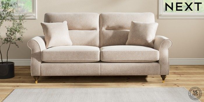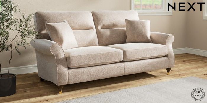 7.2.10 Ashford Highback 3 Seater Sofa Cotswold Chenille Light Natural Modern Turned Metal Cap - Mid | Made Click here to use our website with more accessibility support, for example screen readers