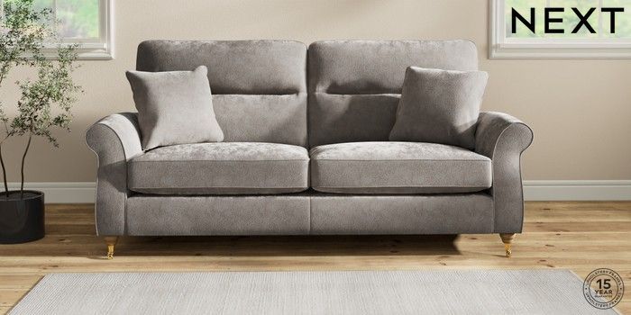 7.2.10 Ashford Highback 3 Seater Sofa Distressed Velour French Grey Castor - Light | Made Click here to use our website with more accessibility support, for example screen readers