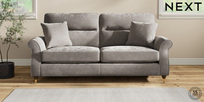 7.2.10 Ashford Highback 3 Seater Sofa Distressed Velour French Grey Castor - Mid | Made Click here to use our website with more accessibility support, for example screen readers