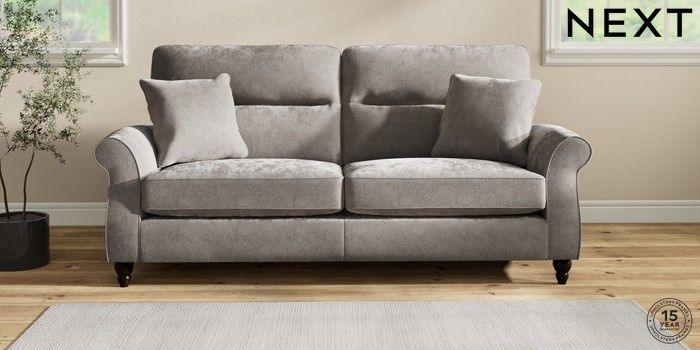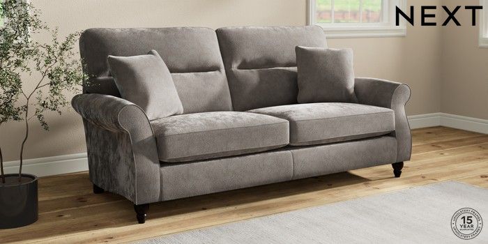 7.2.10 Ashford Highback 3 Seater Sofa Distressed Velour French Grey Low Turned - Dark | Made Click here to use our website with more accessibility support, for example screen readers