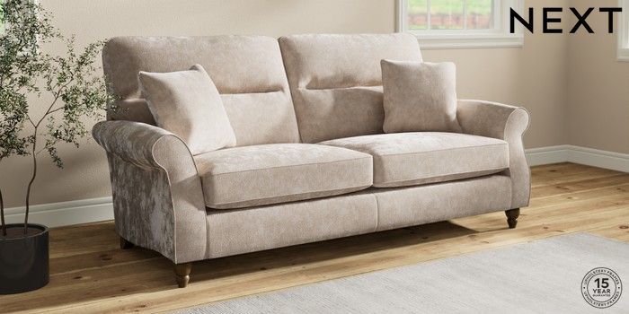 7.2.10 Ashford Highback 3 Seater Sofa Distressed Velour Mid Natural Low Turned - Mid | Made Click here to use our website with more accessibility support, for example screen readers