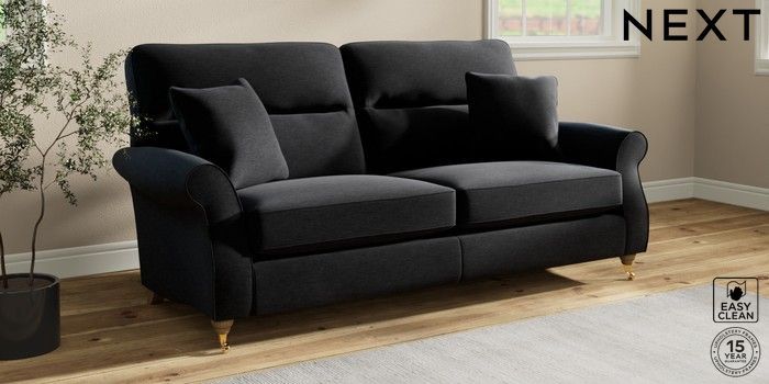 7.2.10 Ashford Highback 3 Seater Sofa Fine Chenille Easy Clean Black Castor - Light | Made Click here to use our website with more accessibility support, for example screen readers