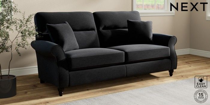 7.2.10 Ashford Highback 3 Seater Sofa Fine Chenille Easy Clean Black Low Turned - Dark | Made Click here to use our website with more accessibility support, for example screen readers