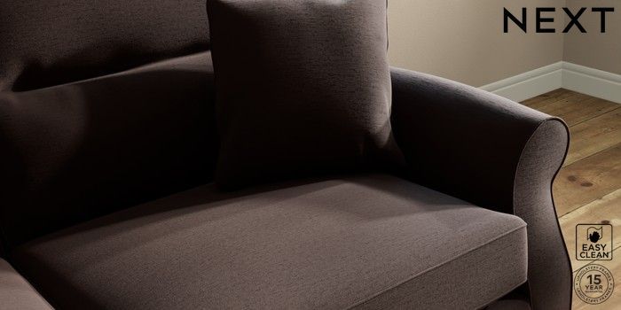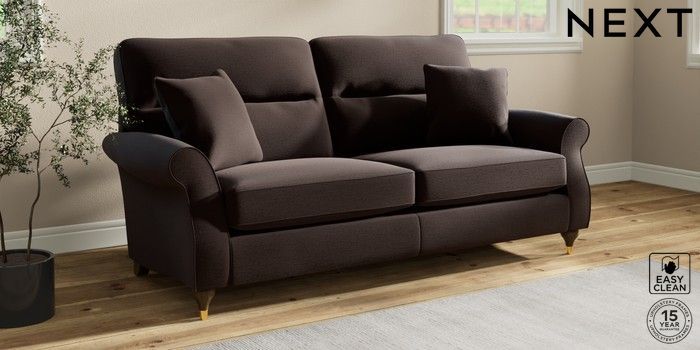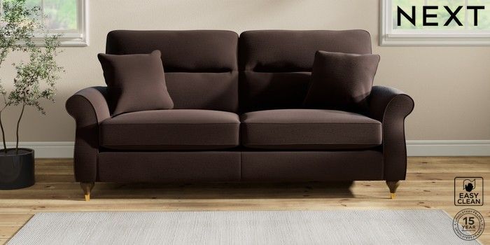7.2.10 Ashford Highback 3 Seater Sofa Fine Chenille Easy Clean Chocolate Brown Modern Turned Metal Cap - Mid | Made Click here to use our website with more accessibility support, for example screen readers