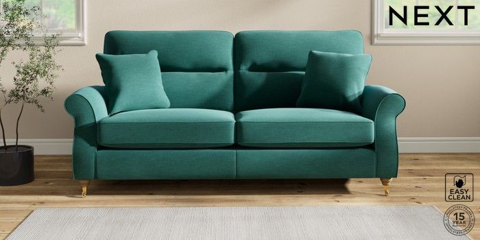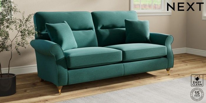7.2.10 Ashford Highback 3 Seater Sofa Fine Chenille Easy Clean Dark Juniper Green Castor - Light | Made Click here to use our website with more accessibility support, for example screen readers