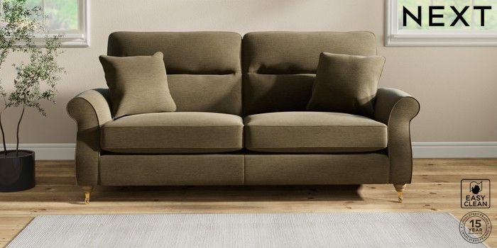 7.2.10 Ashford Highback 3 Seater Sofa Fine Chenille Easy Clean Dark Moss Green Castor - Light | Made Click here to use our website with more accessibility support, for example screen readers