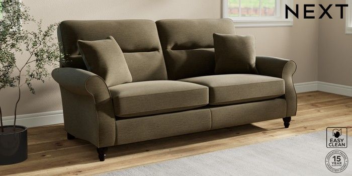 7.2.10 Ashford Highback 3 Seater Sofa Fine Chenille Easy Clean Dark Moss Green Low Turned - Dark | Made Click here to use our website with more accessibility support, for example screen readers