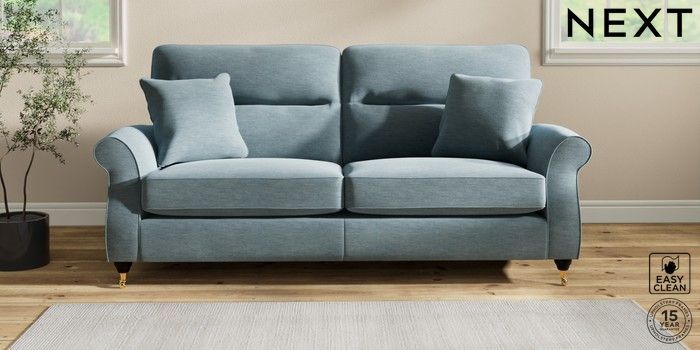 7.2.10 Ashford Highback 3 Seater Sofa Fine Chenille Easy Clean Mid Blue Castor - Dark | Made Click here to use our website with more accessibility support, for example screen readers