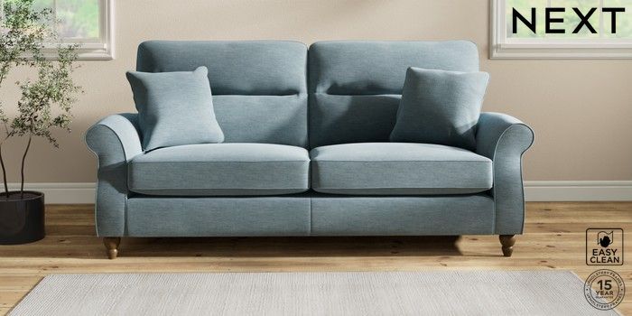 7.2.10 Ashford Highback 3 Seater Sofa Fine Chenille Easy Clean Mid Blue Low Turned - Mid | Made Click here to use our website with more accessibility support, for example screen readers