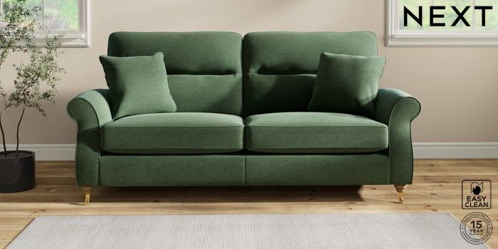 7.2.10 Ashford Highback 3 Seater Sofa Fine Chenille Easy Clean Mid Khaki Green Castor - Light | Made Click here to use our website with more accessibility support, for example screen readers