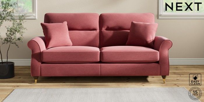7.2.10 Ashford Highback 3 Seater Sofa Fine Chenille Easy Clean Mid Pink Castor - Mid | Made Click here to use our website with more accessibility support, for example screen readers