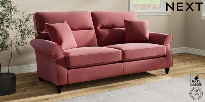 7.2.10 Ashford Highback 3 Seater Sofa Fine Chenille Easy Clean Mid Pink Low Turned - Dark | Made Click here to use our website with more accessibility support, for example screen readers