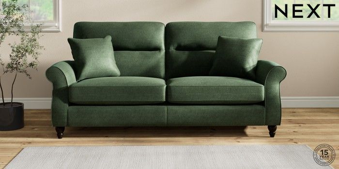 7.2.10 Ashford Highback 3 Seater Sofa Luxe Chenille Dark Green Low Turned - Dark | Made Click here to use our website with more accessibility support, for example screen readers
