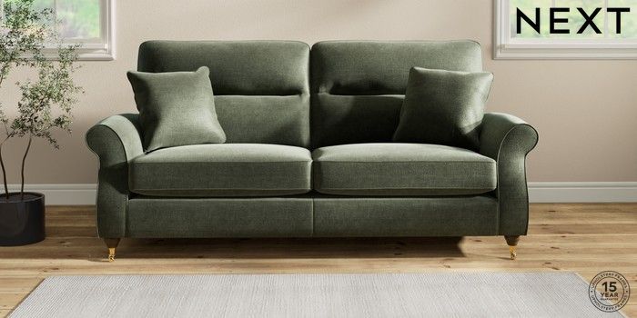 7.2.10 Ashford Highback 3 Seater Sofa Luxe Chenille Mid Green Castor - Mid | Made Click here to use our website with more accessibility support, for example screen readers
