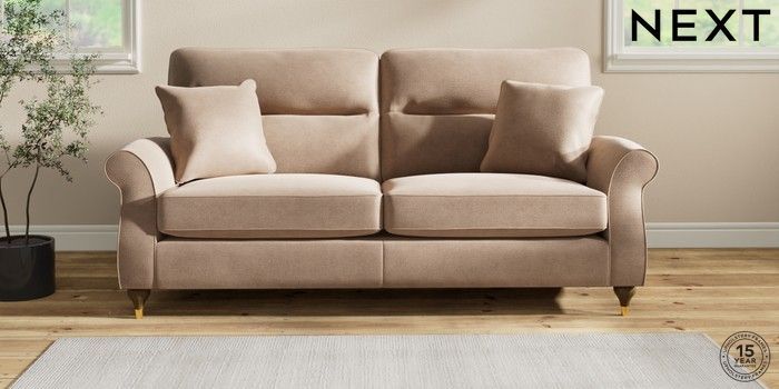 7.2.10 Ashford Highback 3 Seater Sofa Luxe Chenille Mid Natural Modern Turned Metal Cap - Mid | Made Click here to use our website with more accessibility support, for example screen readers