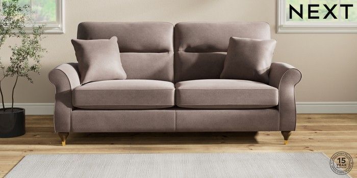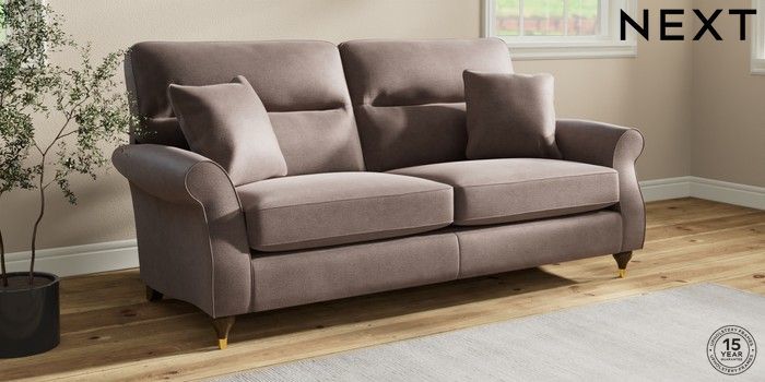 7.2.10 Ashford Highback 3 Seater Sofa Luxe Chenille Mink Brown Modern Turned Metal Cap - Mid | Made Click here to use our website with more accessibility support, for example screen readers