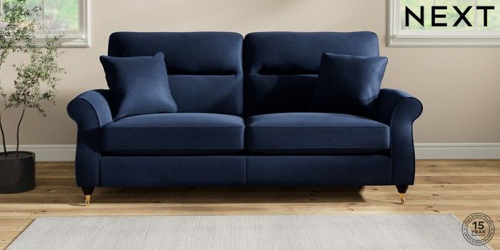 7.2.10 Ashford Highback 3 Seater Sofa Luxe Chenille Navy Blue Castor - Dark | Made Click here to use our website with more accessibility support, for example screen readers