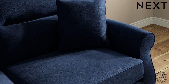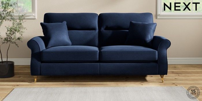 7.2.10 Ashford Highback 3 Seater Sofa Luxe Chenille Navy Blue Castor - Light | Made Click here to use our website with more accessibility support, for example screen readers