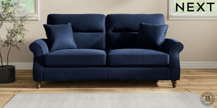 7.2.10 Ashford Highback 3 Seater Sofa Luxe Chenille Navy Blue Low Turned - Mid | Made Click here to use our website with more accessibility support, for example screen readers