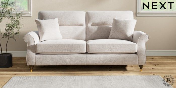 Sink into the Ashford high-back sofa, where country style meets ultimate comfort. Its generous size and elegant scroll arms give it a classic look. You'll love the extra back support from its higher design. The seats are designed for firm support and long-lasting comfort, with a special firmer high-density foam core sandwiched between soft foam toppers to give ultimate support, durability and recovery whilst offering a more tailored look that bounces back into shape – no need for constant plumping! These seat cushions are low maintainence and will return to their shape when they are not in use. We've added scatter cushions filled with a luxurious fibre mix for added comfort. Seat cushions are reversible.