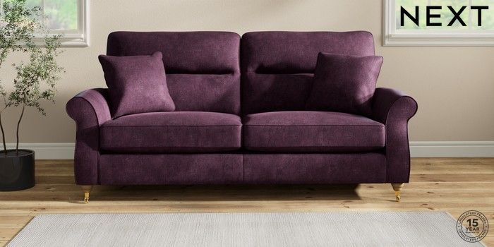 7.2.10 Ashford Highback 3 Seater Sofa Plush Chenille Dark Plum Purple Castor - Light | Made Click here to use our website with more accessibility support, for example screen readers