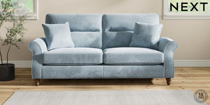 7.2.10 Ashford Highback 3 Seater Sofa Plush Chenille Light Blue Low Turned - Mid | Made Click here to use our website with more accessibility support, for example screen readers