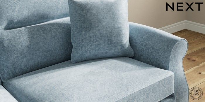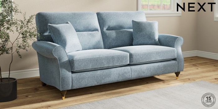 7.2.10 Ashford Highback 3 Seater Sofa Plush Chenille Light Blue Modern Turned Metal Cap - Mid | Made Click here to use our website with more accessibility support, for example screen readers