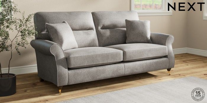 7.2.10 Ashford Highback 3 Seater Sofa Plush Chenille Light Grey Castor - Mid | Made Click here to use our website with more accessibility support, for example screen readers