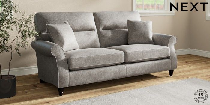 7.2.10 Ashford Highback 3 Seater Sofa Plush Chenille Light Grey Low Turned - Dark | Made Click here to use our website with more accessibility support, for example screen readers