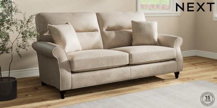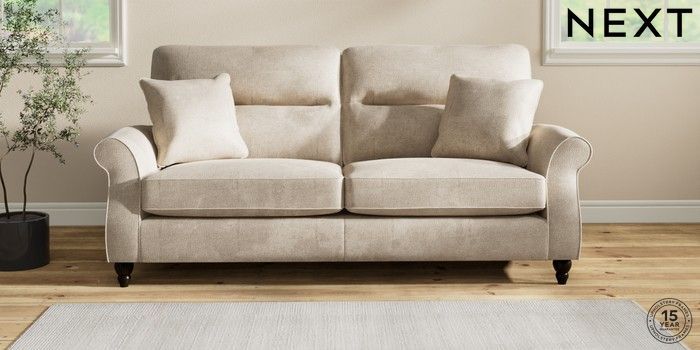 7.2.10 Ashford Highback 3 Seater Sofa Plush Chenille Light Natural Low Turned - Dark | Made Click here to use our website with more accessibility support, for example screen readers