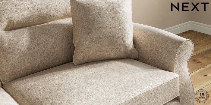 7.2.10 Ashford Highback 3 Seater Sofa Plush Chenille Light Natural Modern Turned Metal Cap - Mid | Made Click here to use our website with more accessibility support, for example screen readers