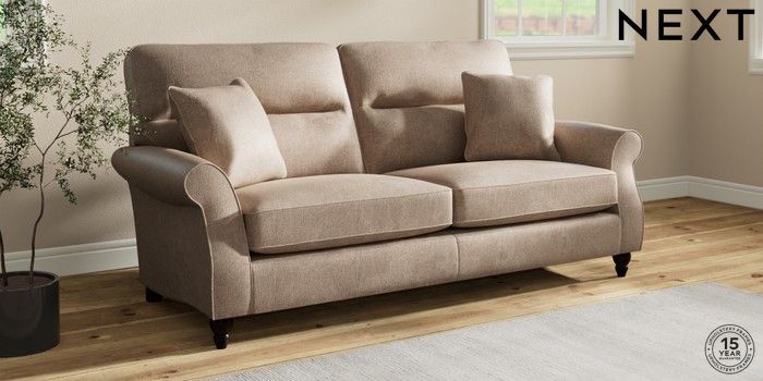 7.2.10 Ashford Highback 3 Seater Sofa Plush Chenille Mid Natural Low Turned - Dark | Made Click here to use our website with more accessibility support, for example screen readers