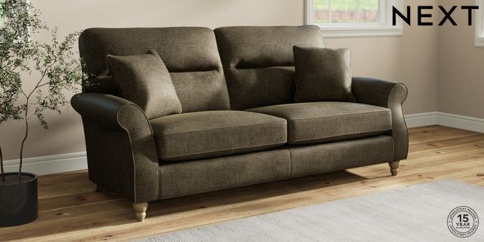 7.2.10 Ashford Highback 3 Seater Sofa Plush Chenille Moss Green Low Turned - Light | Made Click here to use our website with more accessibility support, for example screen readers