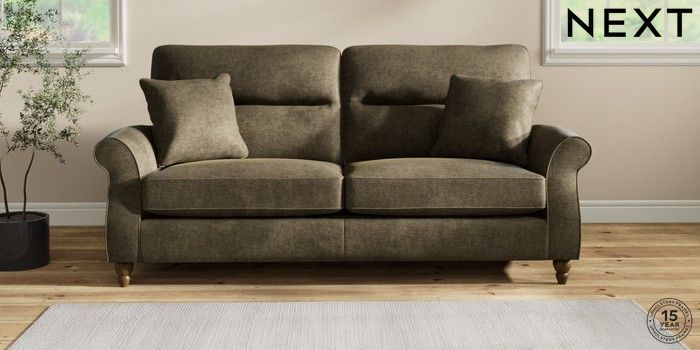 7.2.10 Ashford Highback 3 Seater Sofa Plush Chenille Moss Green Low Turned - Mid | Made Click here to use our website with more accessibility support, for example screen readers