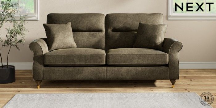 7.2.10 Ashford Highback 3 Seater Sofa Plush Chenille Moss Green Modern Turned Metal Cap - Mid | Made Click here to use our website with more accessibility support, for example screen readers