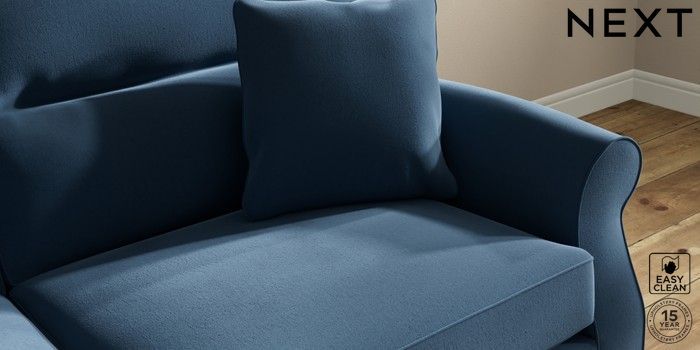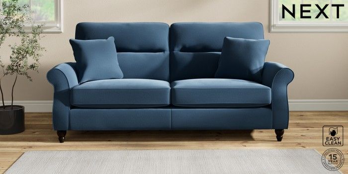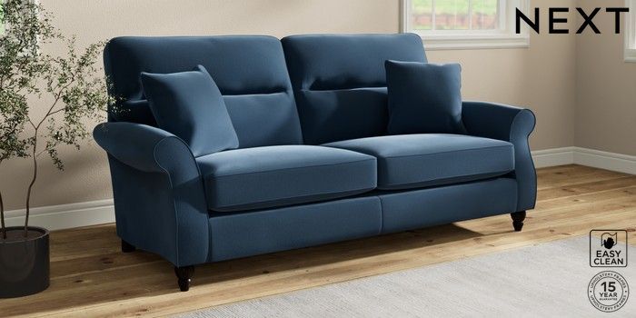 7.2.10 Ashford Highback 3 Seater Sofa Plush Velvet Easy Clean Airforce Blue Low Turned - Dark | Made Click here to use our website with more accessibility support, for example screen readers