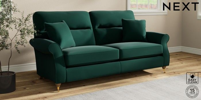 7.2.10 Ashford Highback 3 Seater Sofa Plush Velvet Easy Clean Bottle Green Castor - Light | Made Click here to use our website with more accessibility support, for example screen readers