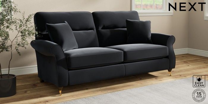 7.2.10 Ashford Highback 3 Seater Sofa Plush Velvet Easy Clean Charcoal Grey Castor - Mid | Made Click here to use our website with more accessibility support, for example screen readers