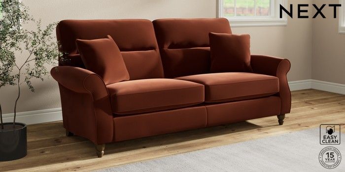 7.2.10 Ashford Highback 3 Seater Sofa Plush Velvet Easy Clean Ginger Orange Low Turned - Mid | Made Click here to use our website with more accessibility support, for example screen readers
