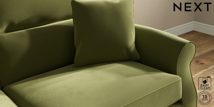 7.2.10 Ashford Highback 3 Seater Sofa Plush Velvet Easy Clean Mid Olive Green Castor - Light | Made Click here to use our website with more accessibility support, for example screen readers