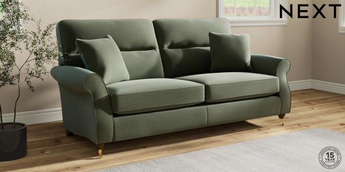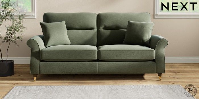 7.2.10 Ashford Highback 3 Seater Sofa Relaxed Linen Look Dark Green Castor - Mid | Made Click here to use our website with more accessibility support, for example screen readers