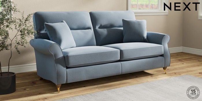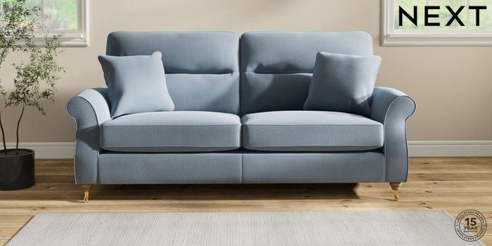 7.2.10 Ashford Highback 3 Seater Sofa Relaxed Linen Look Mid Blue Castor - Light | Made Click here to use our website with more accessibility support, for example screen readers