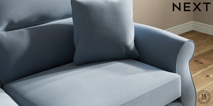 7.2.10 Ashford Highback 3 Seater Sofa Relaxed Linen Look Mid Blue Modern Turned Metal Cap - Mid | Made Click here to use our website with more accessibility support, for example screen readers