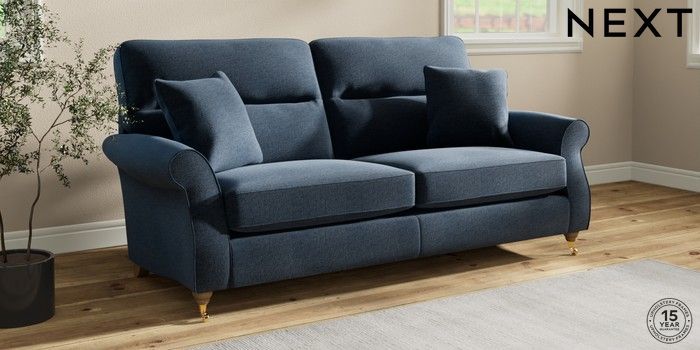 7.2.10 Ashford Highback 3 Seater Sofa Ripple Chenille Dark Blue Castor - Light | Made Click here to use our website with more accessibility support, for example screen readers