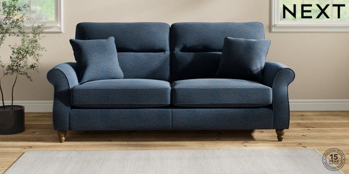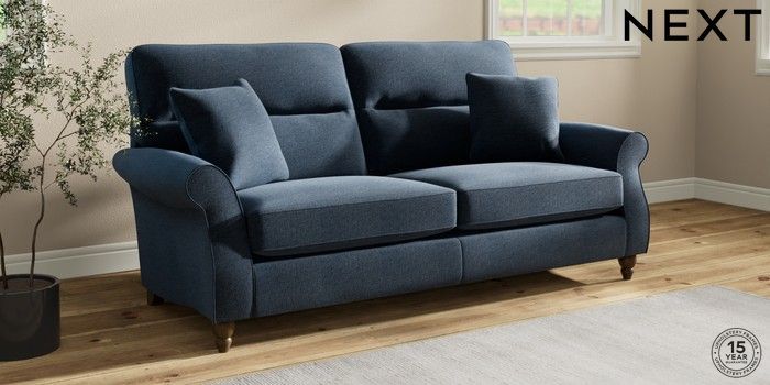 7.2.10 Ashford Highback 3 Seater Sofa Ripple Chenille Dark Blue Low Turned - Mid | Made Click here to use our website with more accessibility support, for example screen readers