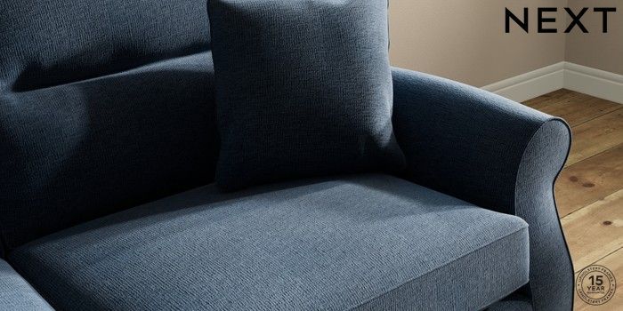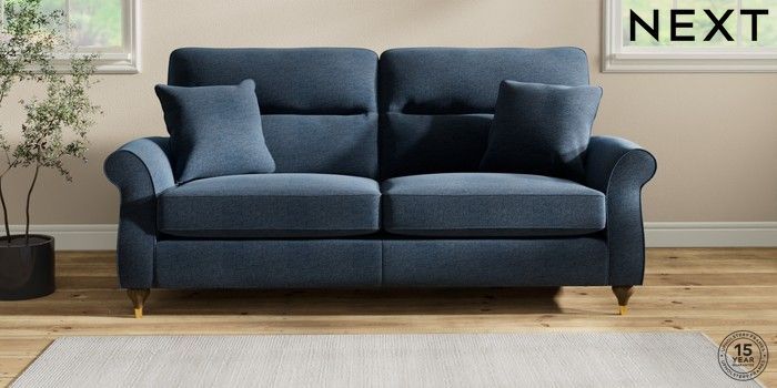 7.2.10 Ashford Highback 3 Seater Sofa Ripple Chenille Dark Blue Modern Turned Metal Cap - Mid | Made Click here to use our website with more accessibility support, for example screen readers