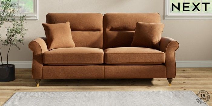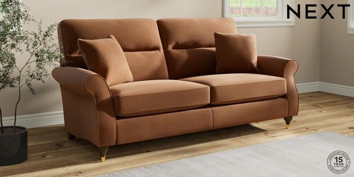 7.2.10 Ashford Highback 3 Seater Sofa Ripple Chenille Mid Rust Brown Modern Turned Metal Cap - Mid | Made Click here to use our website with more accessibility support, for example screen readers