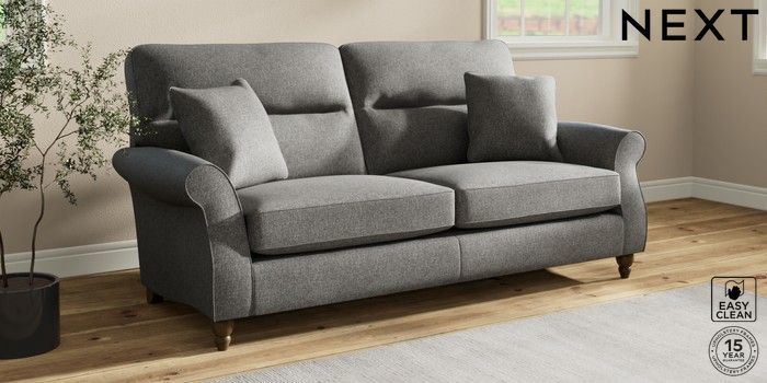 Sink into the Ashford high-back sofa, where country style meets ultimate comfort. Its generous size and elegant scroll arms give it a classic look. You'll love the extra back support from its higher design. The seats are designed for firm support and long-lasting comfort, with a special firmer high-density foam core sandwiched between soft foam toppers to give ultimate support, durability and recovery whilst offering a more tailored look that bounces back into shape – no need for constant plumping! These seat cushions are low maintainence and will return to their shape when they are not in use. We've added scatter cushions filled with a luxurious fibre mix for added comfort. Seat cushions are reversible.